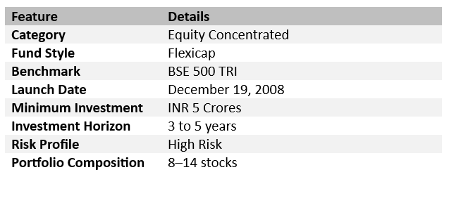 The portfolio generally consists of 8 to 14 high-conviction stocks. The aim is to let each stock contribute meaningfully to long-term performance. It avoids spreading too thin or over-diversifying.
